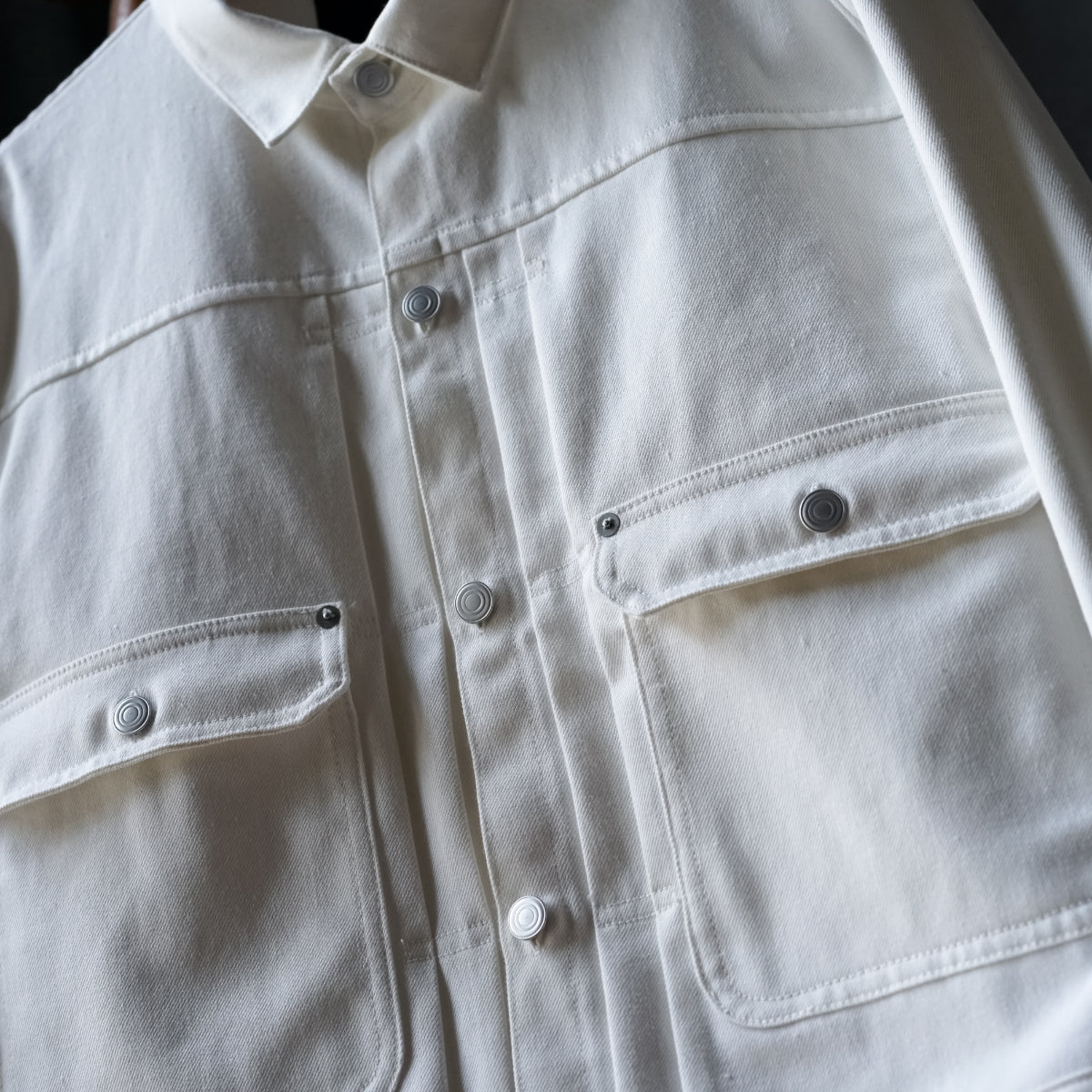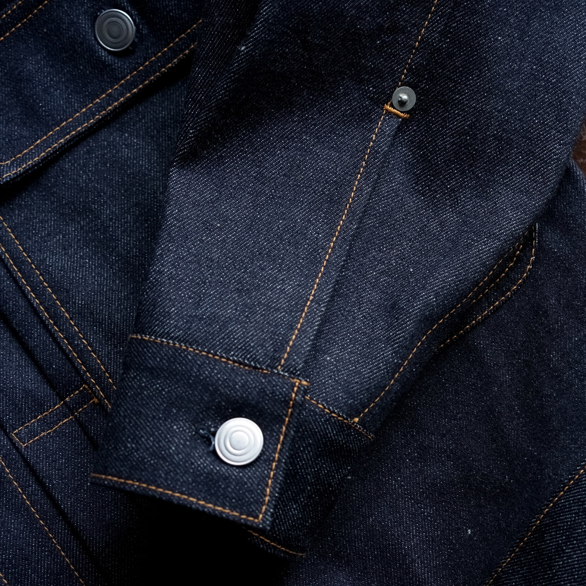 インディゴカラーは、ヴィンテージのようなムラ糸を再現し旧織機でゆっくりと織り上げており、年月とともにその風合いが増し中白のロープ染色よるきれいな縦落ちを体感することができます。