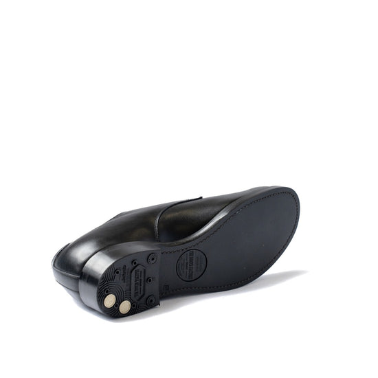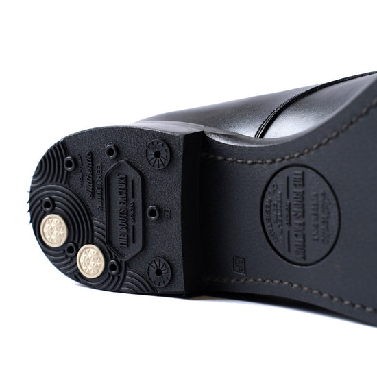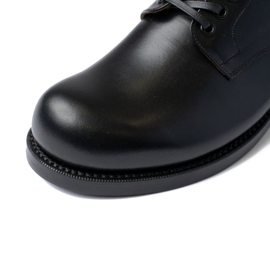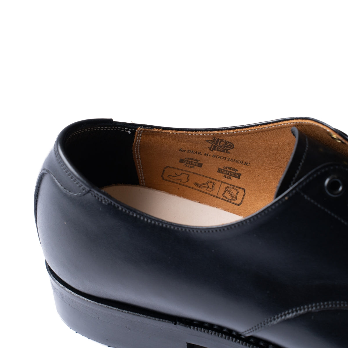 レザーはオランダ産のカーフ(日本で言うところはキップ)を日本で仕上げた、吸い込まれるような透明感のある黒とキメの細かい肌面を持つボックスカーフ。