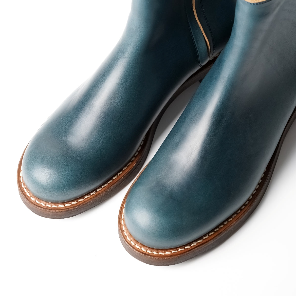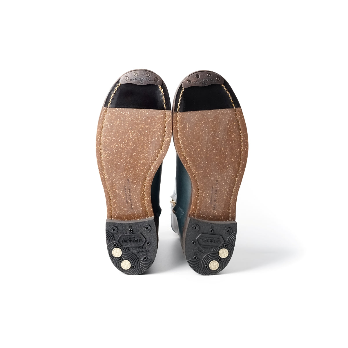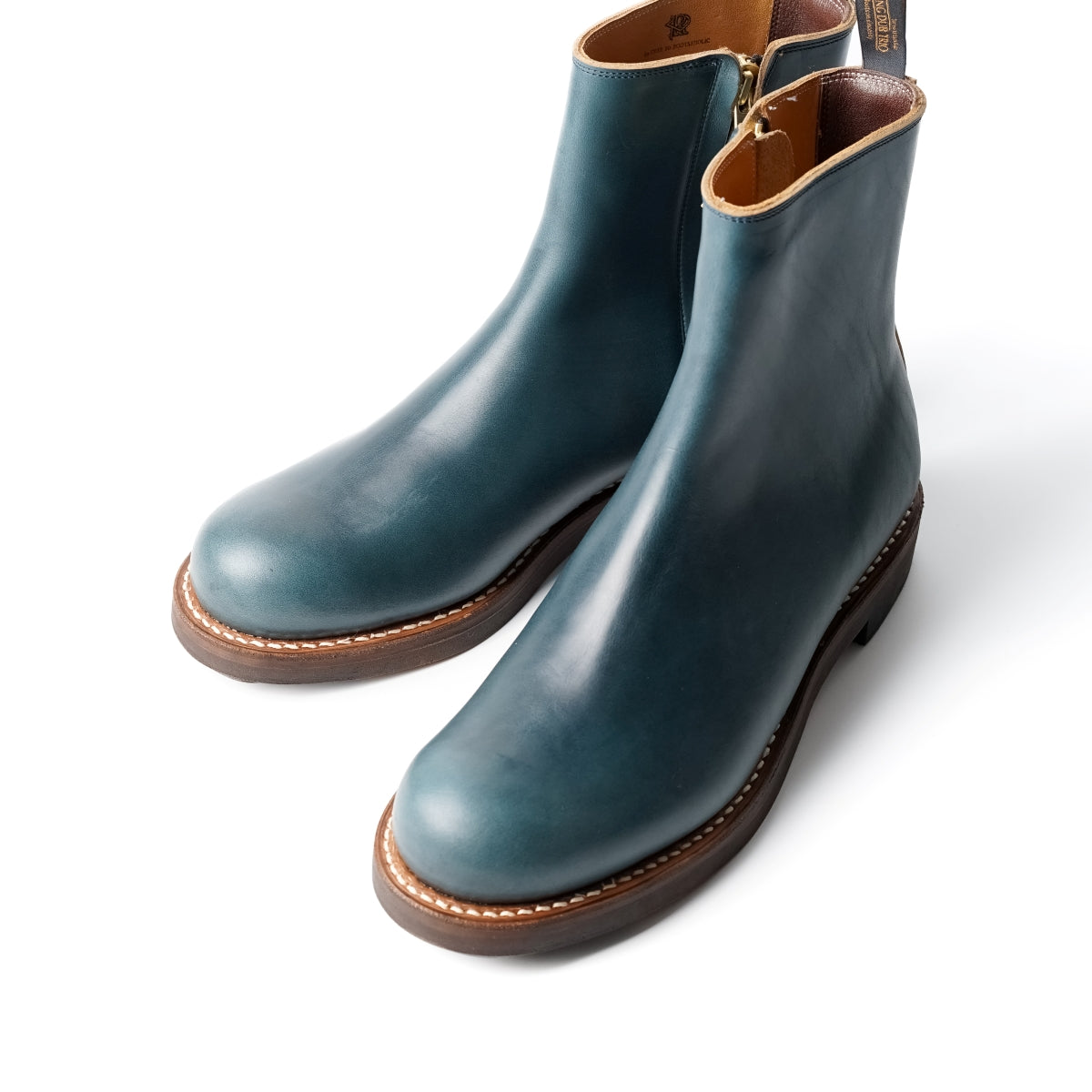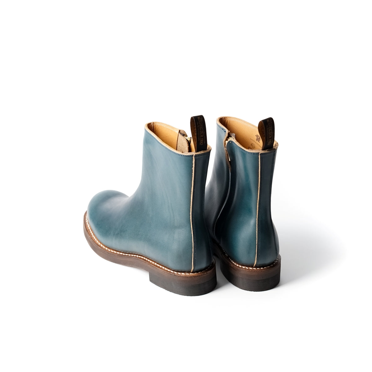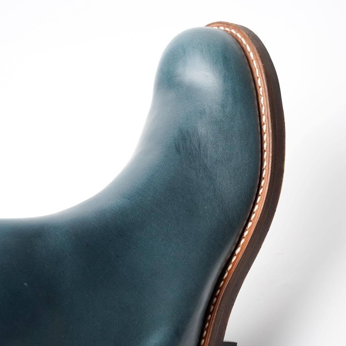 ホーウィン社の誇る伝統のオイルドレザー「クロムエクセル」は、独自ブレンドの天然油脂をふんだんに含んだ門外不出のレシピでつくられた、タフで味わい深い素材。グリーンが差した奥行きのあるネイビーが魅力的です。