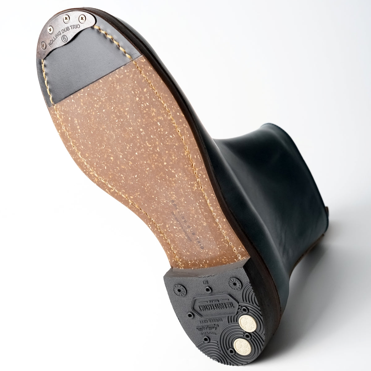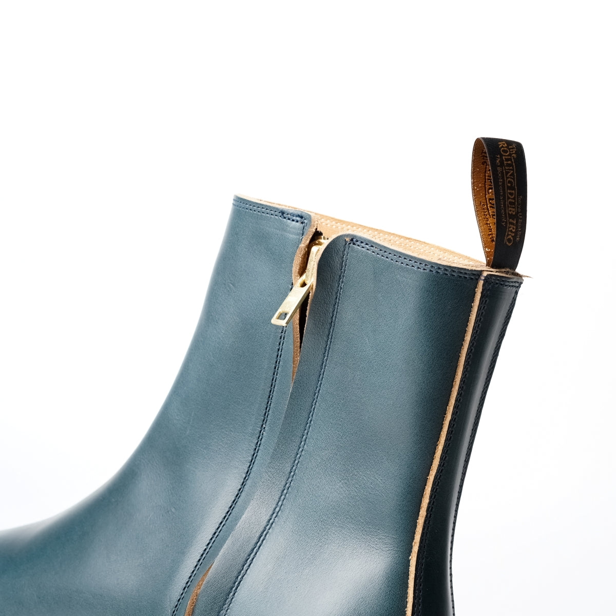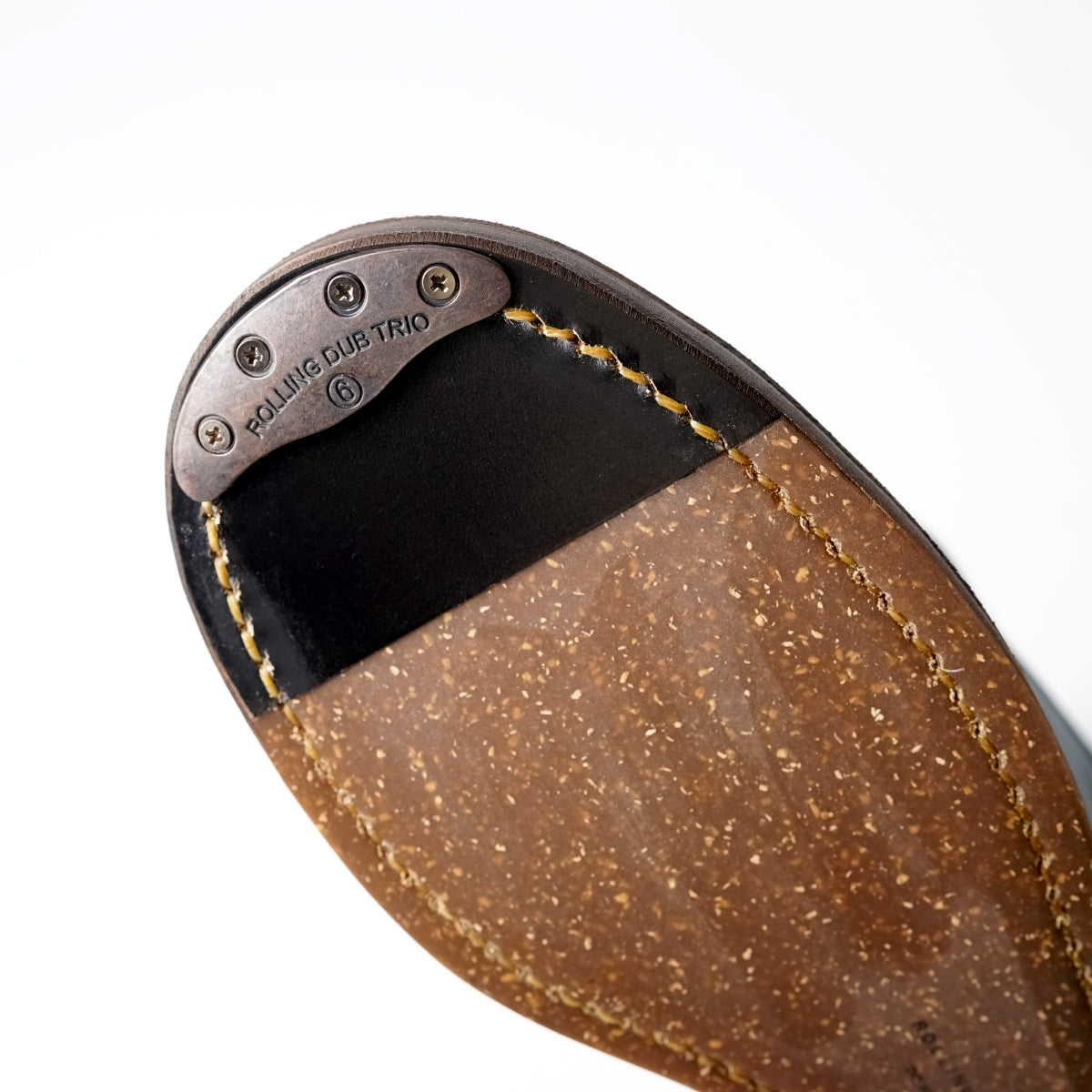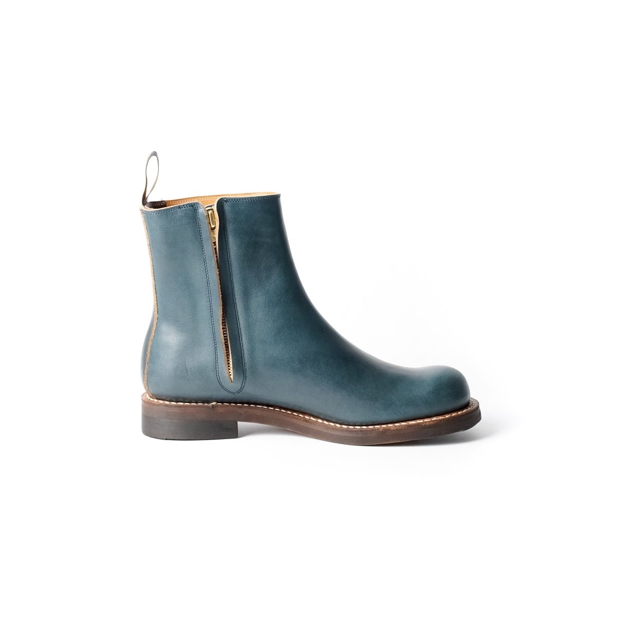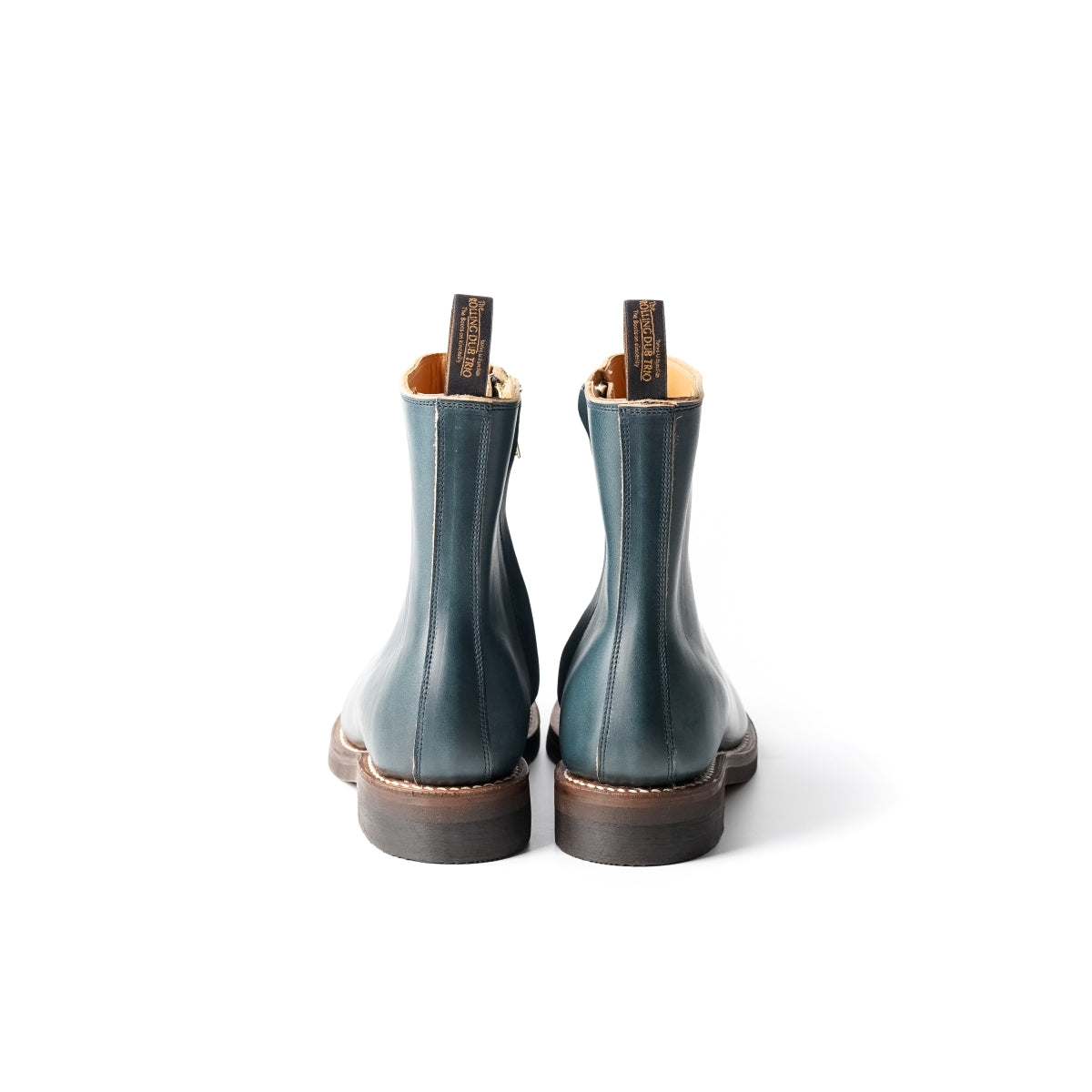 ホーウィン社の誇る伝統のオイルドレザー「クロムエクセル」は、独自ブレンドの天然油脂をふんだんに含んだ門外不出のレシピでつくられた、タフで味わい深い素材。グリーンが差した奥行きのあるネイビーが魅力的です。