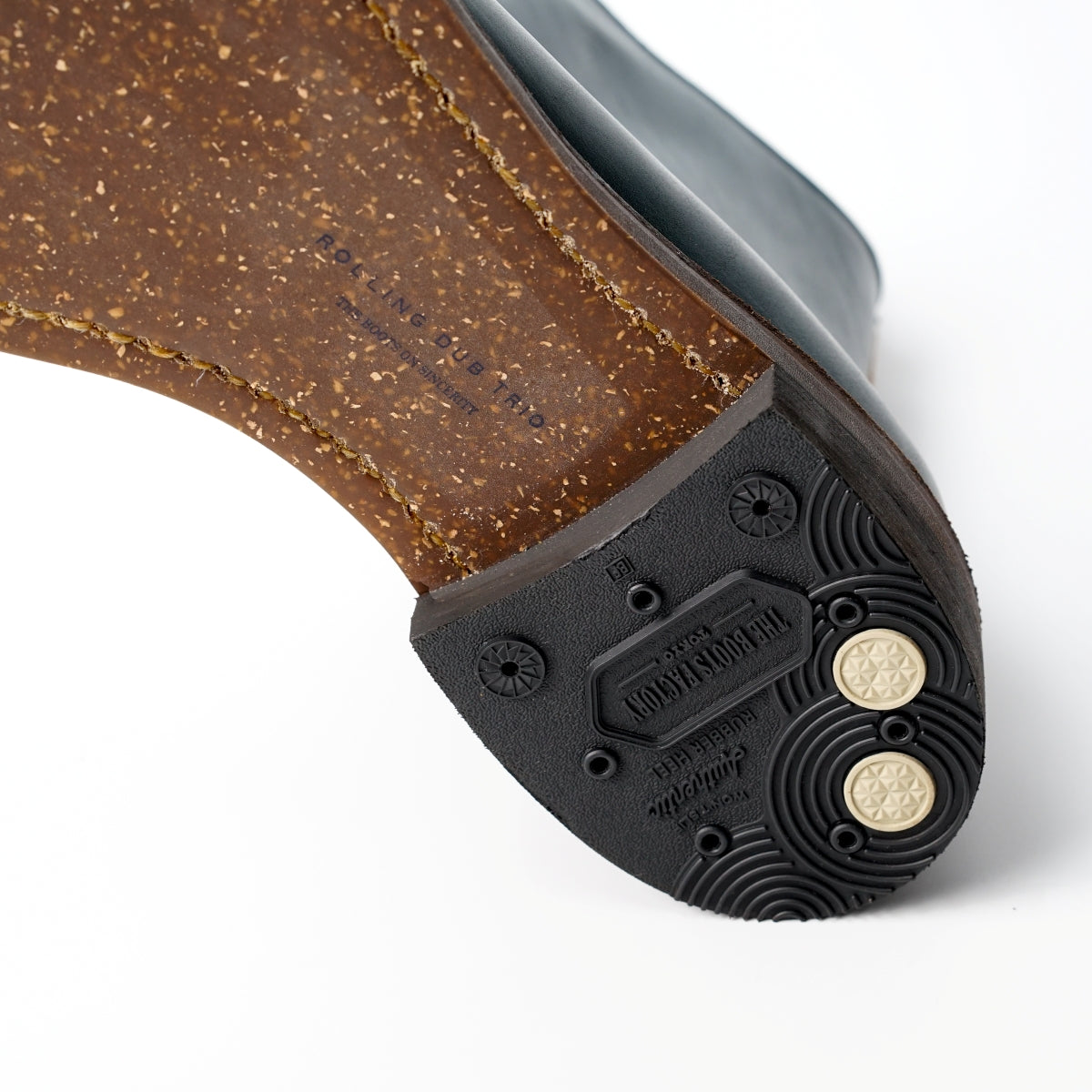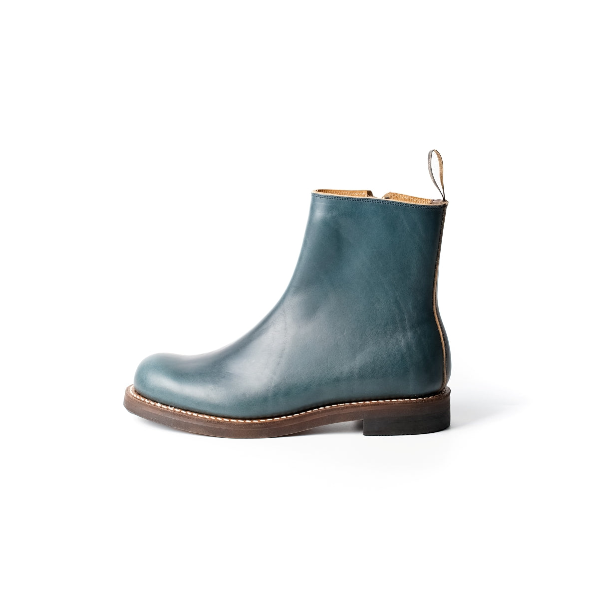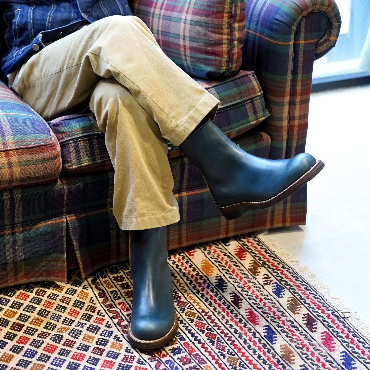 縫い合わせのない一枚の革をクリッピングでくせ付けし、細心の注意を払いながら釣り込み制作をしています。平らな一枚の革をここまで立体的なブーツの形にするのは熟練の職人による高度な技術の賜物です。縫い合わせのない分、また甲が弓なりに立ち上げられている分、履くことで生じるシワが際立ち、他では得られない印象深いエイジングが楽しめます。