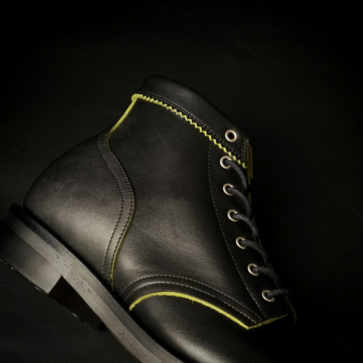 底前部には屈強なレザーを用い、オリジナルのスチールトゥでさらに補強。