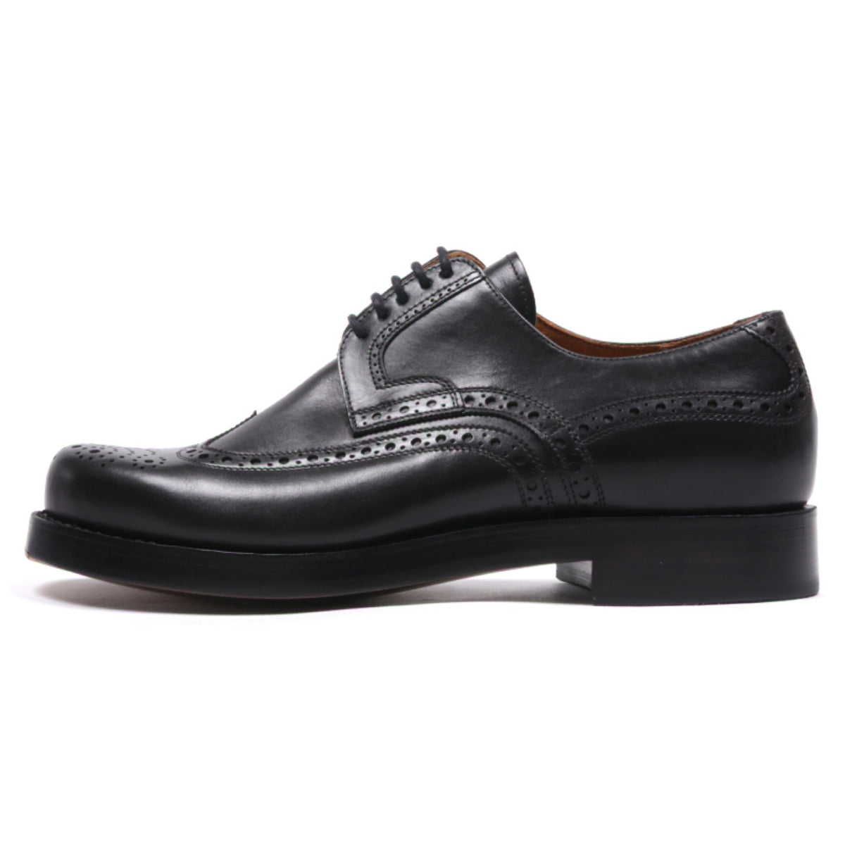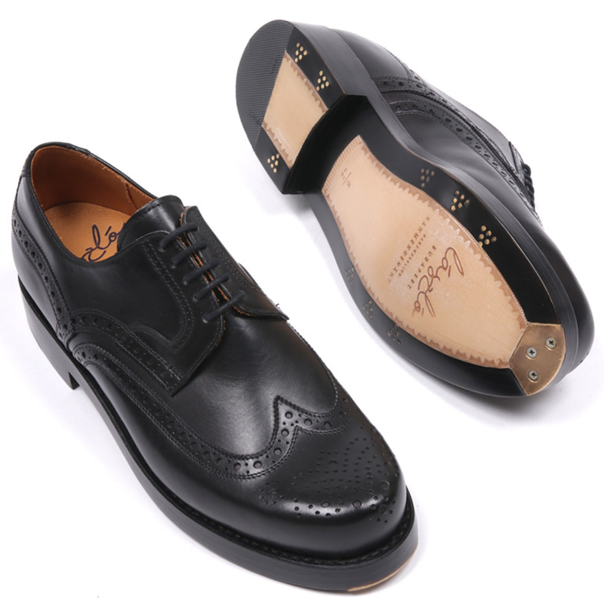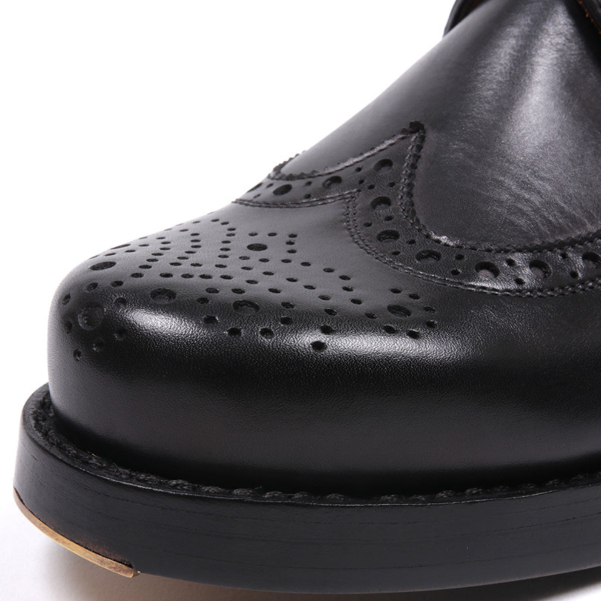 こちらは2種類ある定番ラストのうち"BUDAPEST"(ブダペスト)ラストを採用したフルブローグシューズ。 厚さ1.5cmにもなるトリプルソールと、ぽってりとしたトゥのフォルムが特徴です。 "BUDAPEST"は甲が高めで、"VIENNA"と比べるとウィズが狭い、甲高気味の足形の方に相性の良い木型となります。