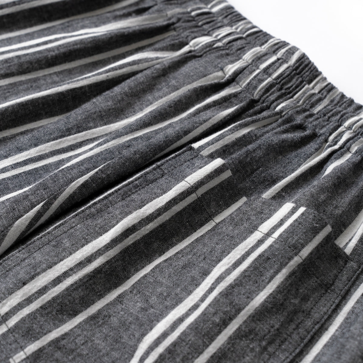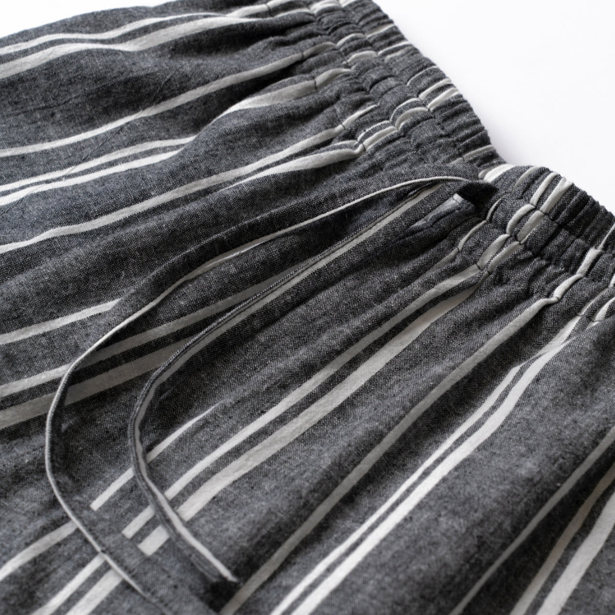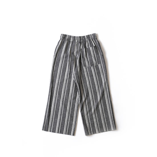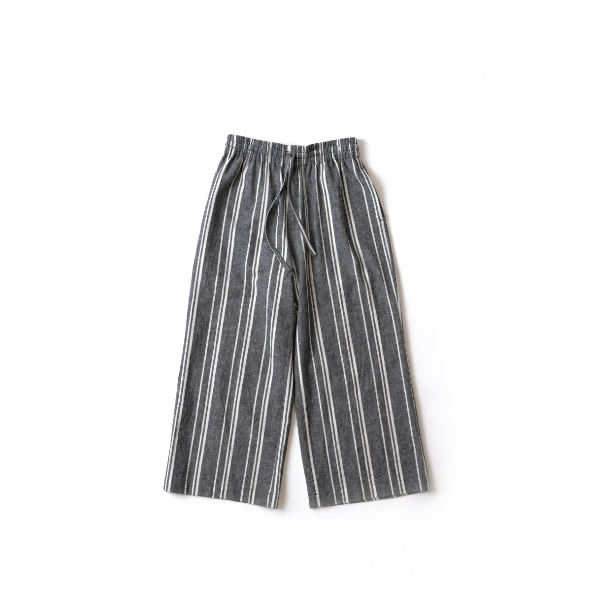 涼しげなコットンリネン生地で仕立てたワイドパンツ。ウエストはゴム入りのイージーフィット仕様。手洗い可能です。同素材のノーフォークジャケットとセットアップでの着用も可能です。