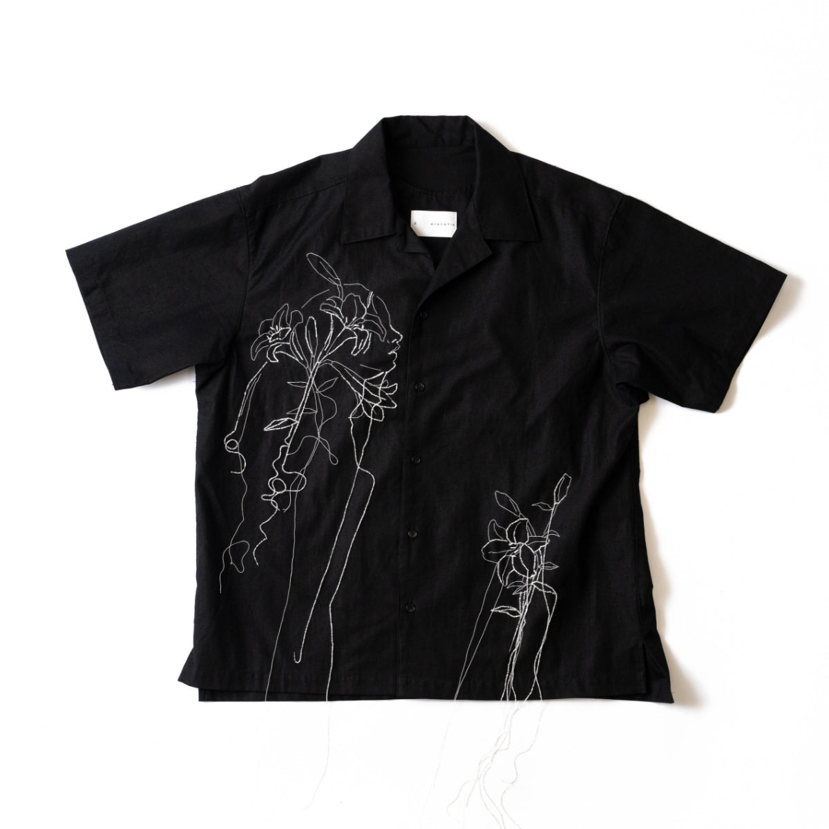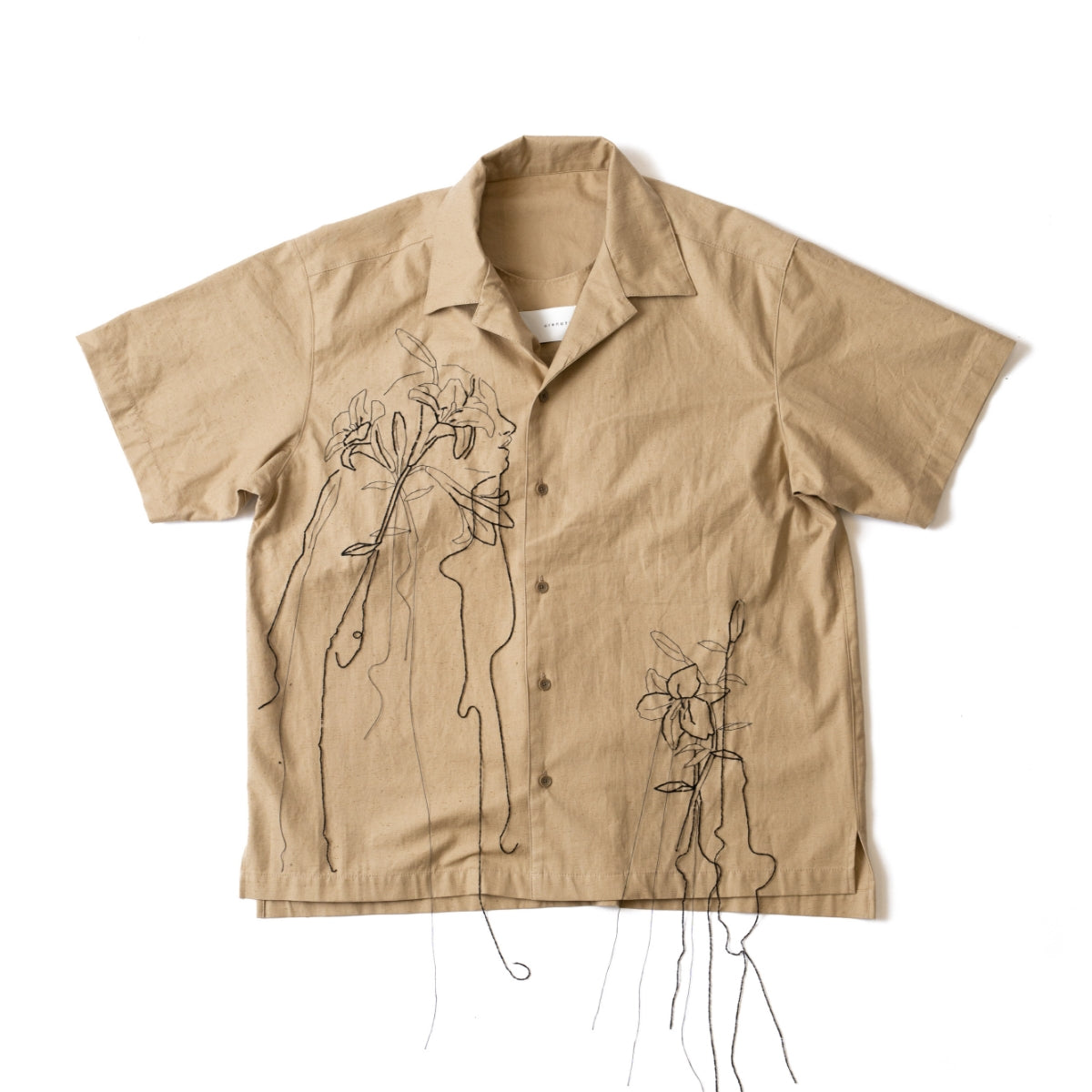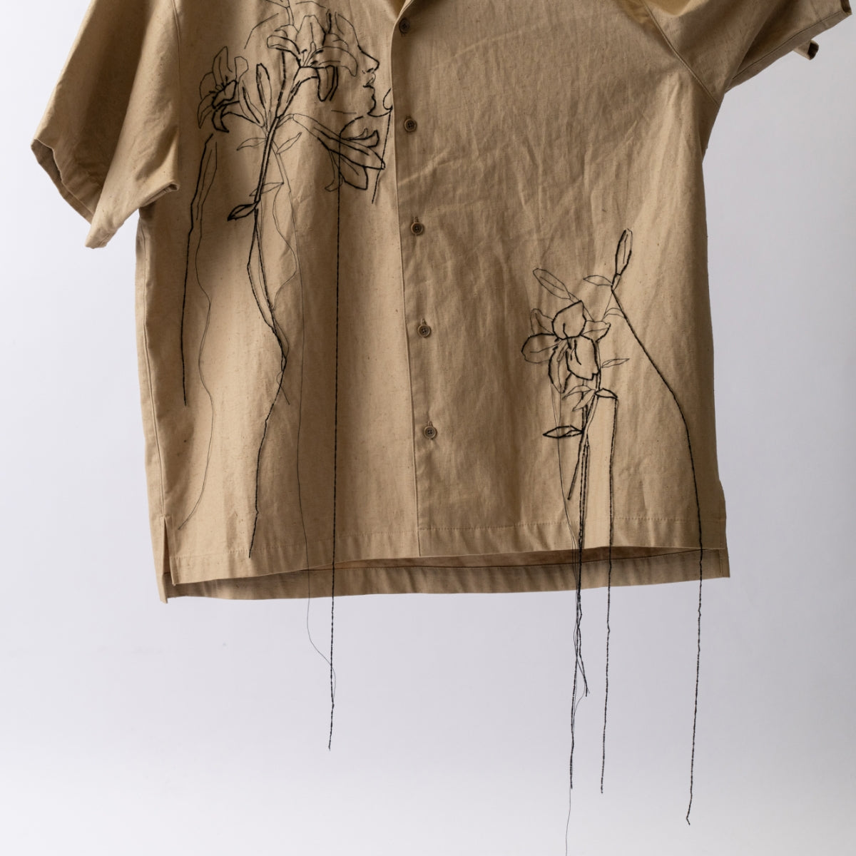 リリーハンド刺繍-ネップコットンオープンカラーシャツ