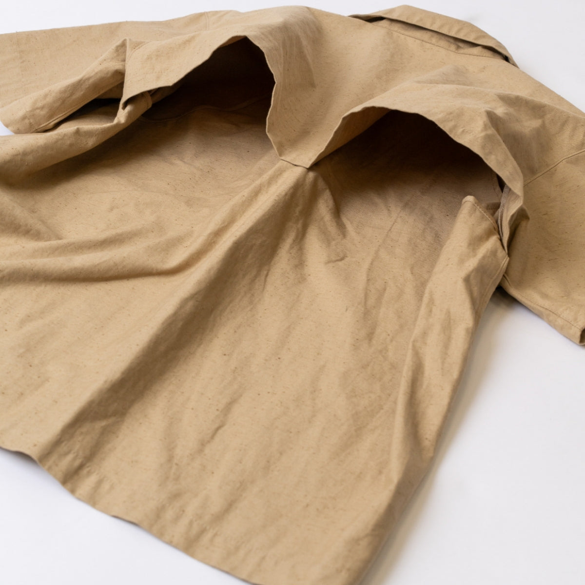 上質なしなやかさとハリがあるコットン素材で仕立てた開襟シャツ。自然な風合いを楽しめるネップ(ふし)が入った生地にハンドメイドによる刺繍を施したアーティスティックな一着です。
