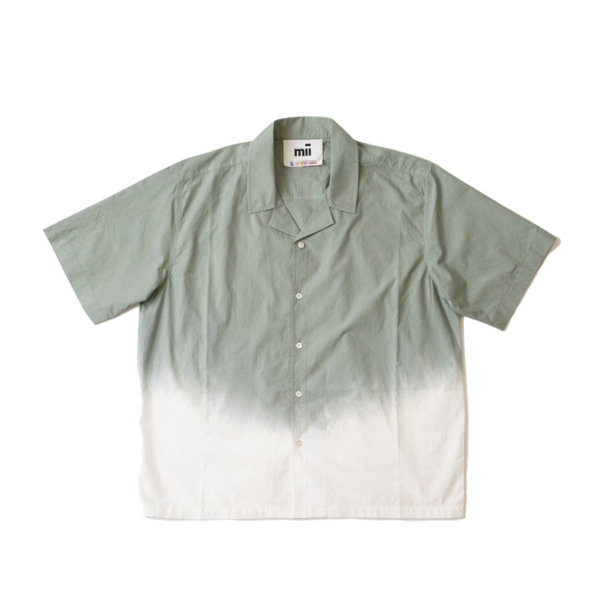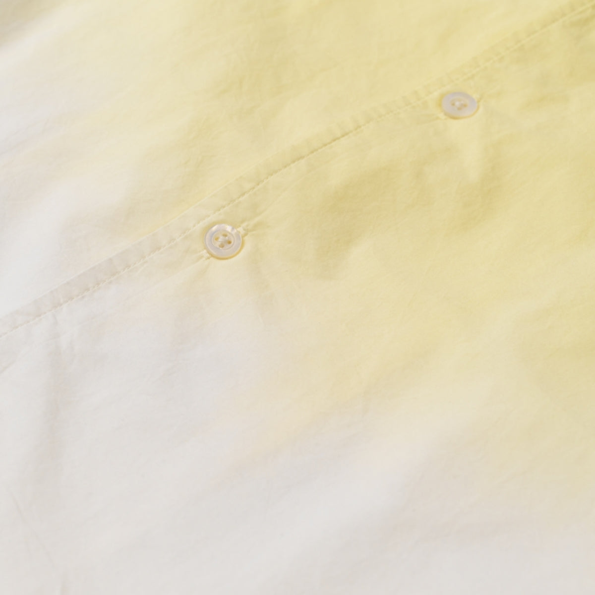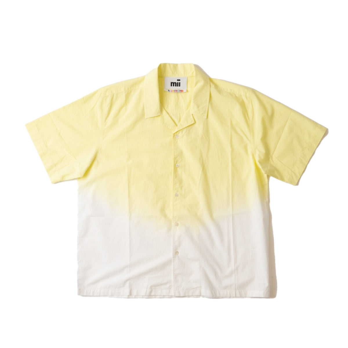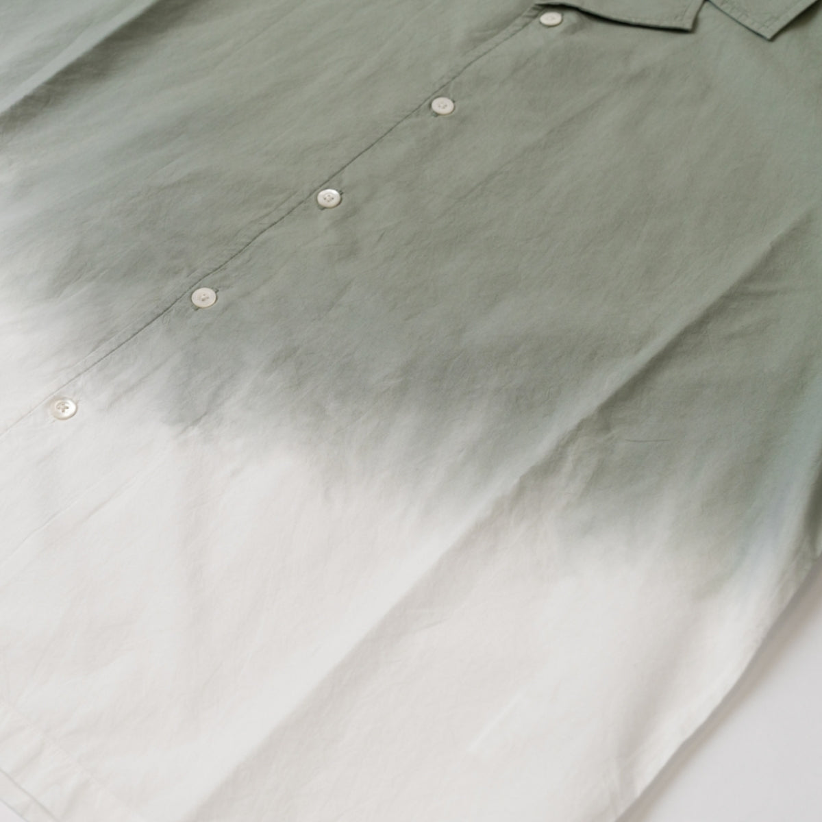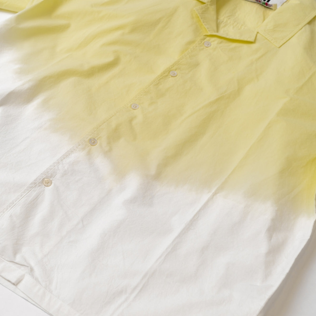 デザイナーのアトリエを表現した今シーズンのコレクション。こちらは伝統的なタイダイ技法によって、色彩とカラリストに対する愛情が表現されたシャツ。バターイエロー、ユーカリグリーンといった柔らかい色を、タイダイ技法を用いて、コットンポプリンのシャツの上部を鮮やかに染め上げています。