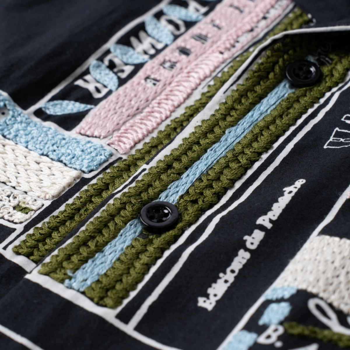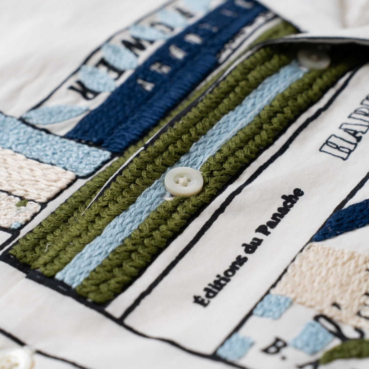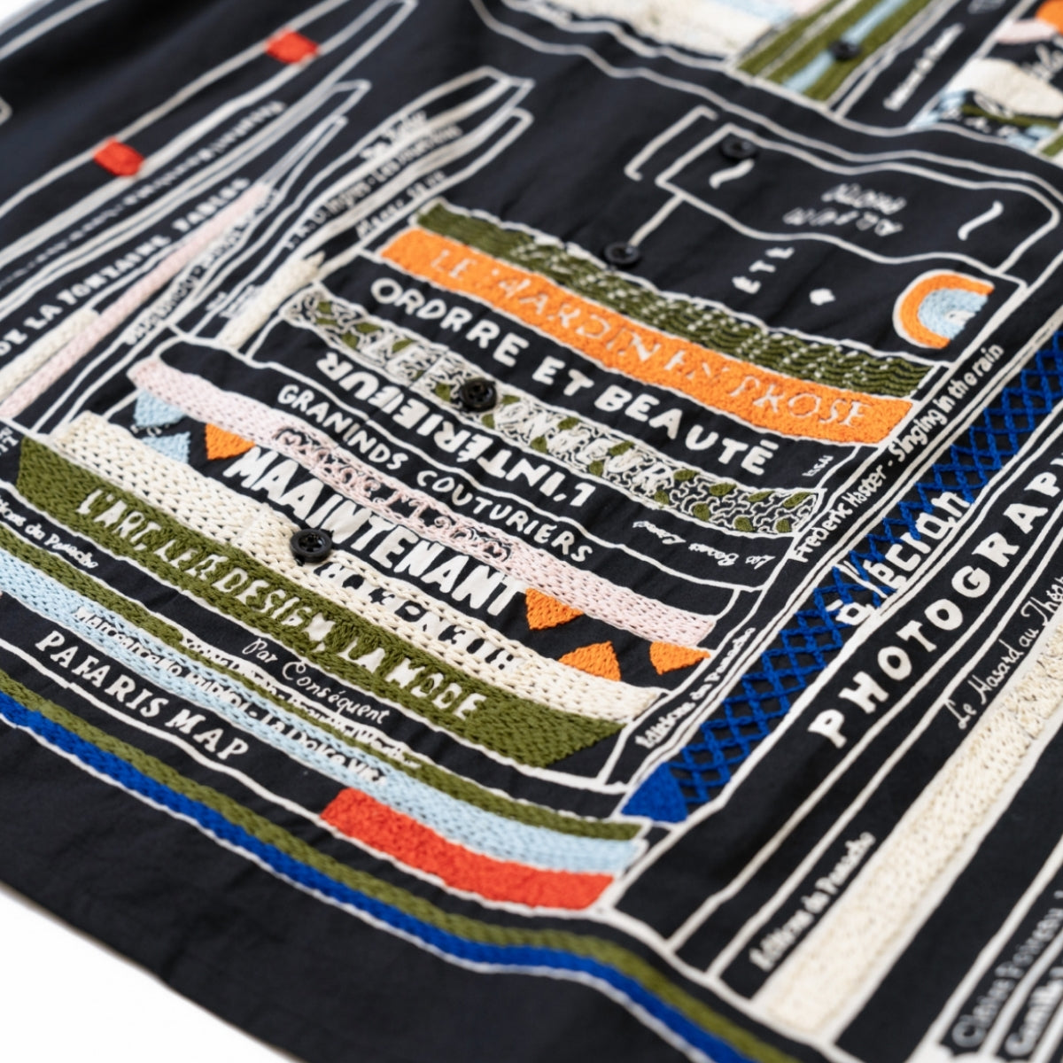 ハンド刺繍とシルクスクリーンプリントという、ブランドを特徴づける技術を組み合わせ、図書館をモチーフとしたオリジナルのライブラリーパターンをデザイン。