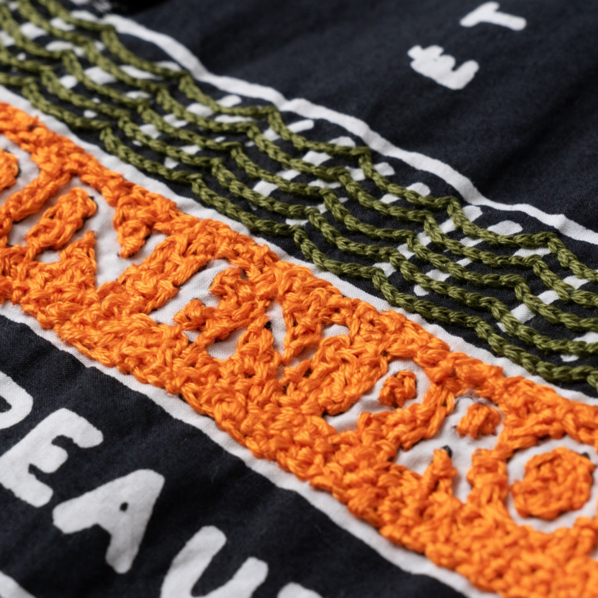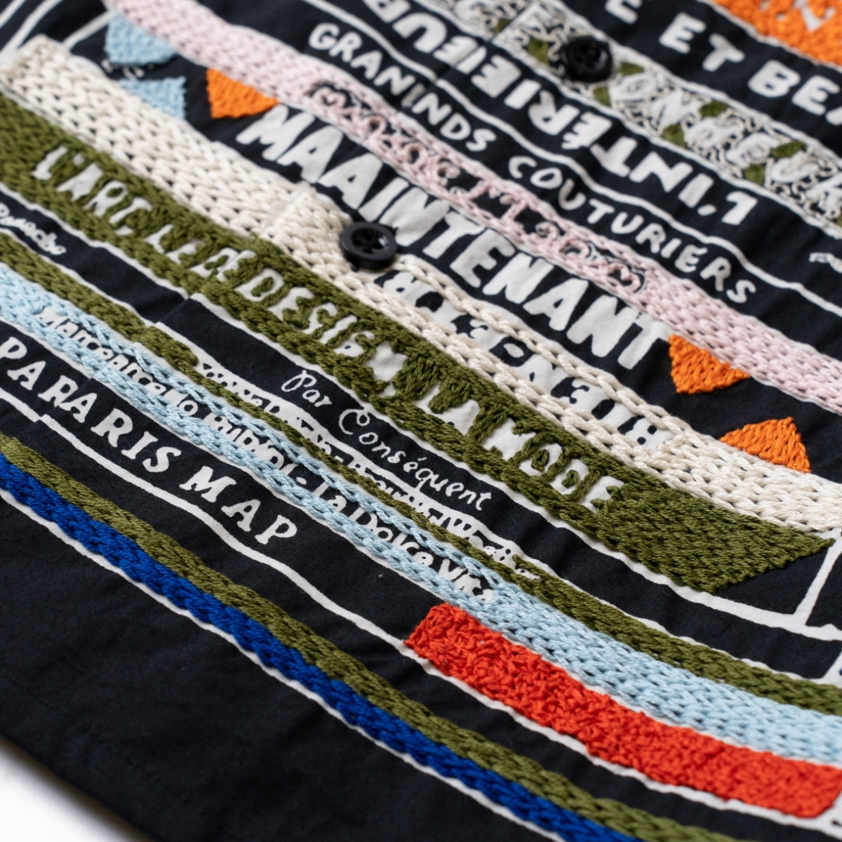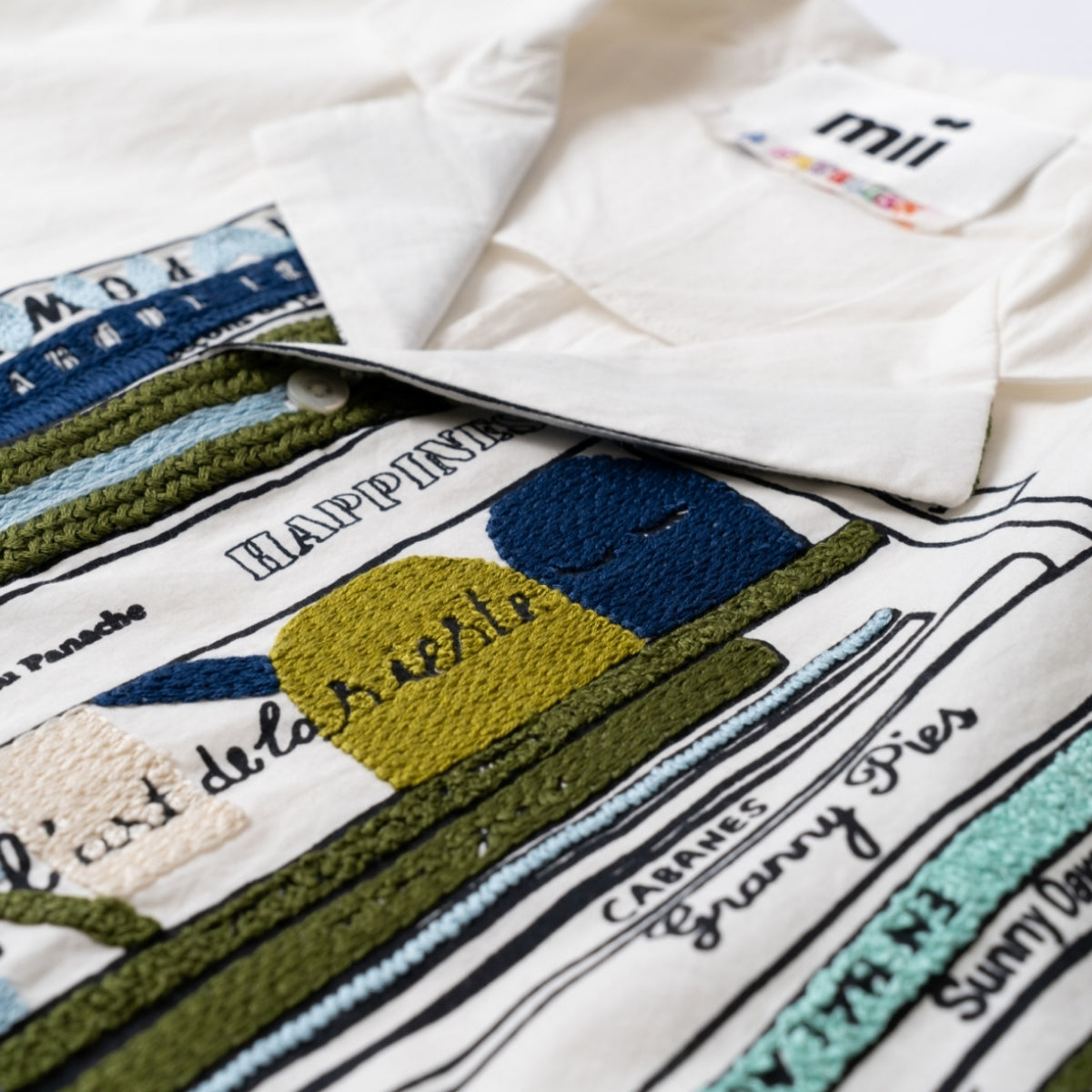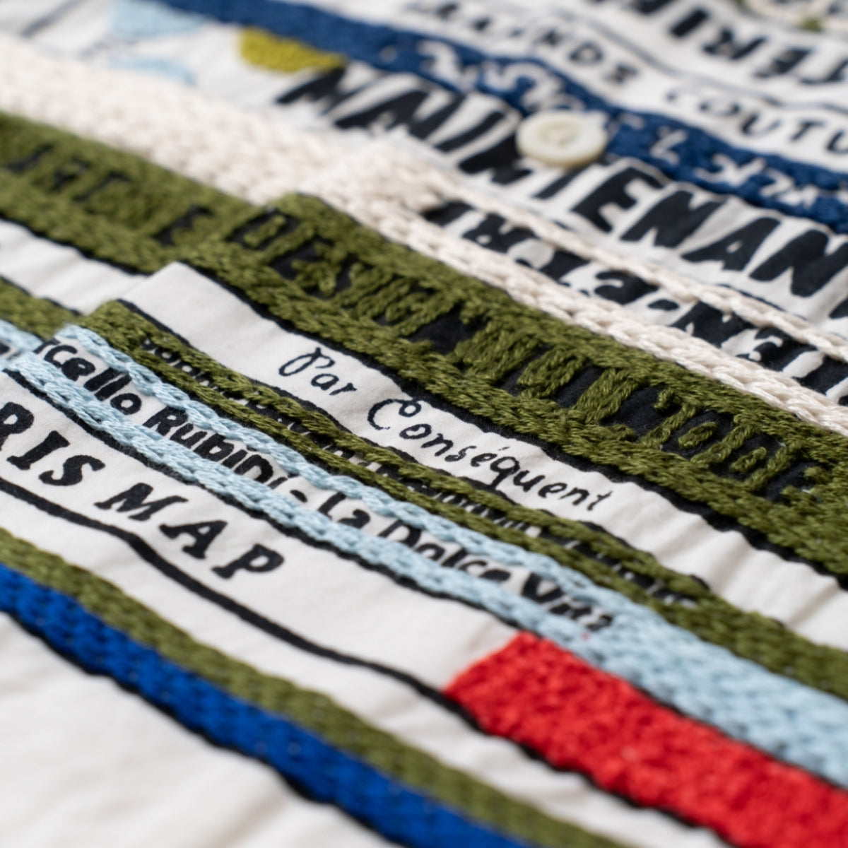 ハンド刺繍とシルクスクリーンプリントという、ブランドを特徴づける技術を組み合わせ、図書館をモチーフとしたオリジナルのライブラリーパターンをデザイン。